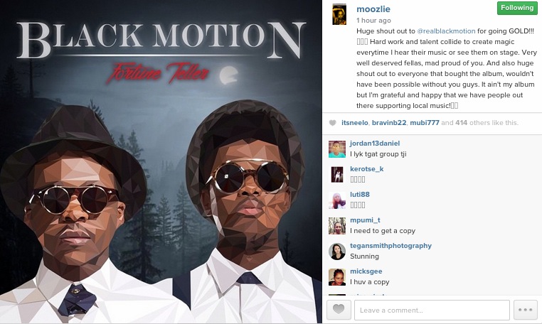 Black Motion's excellent Fortune Teller is well deserving of this status too, and they were even congratulated on Instagram by Nomuzi Mabena who posted: