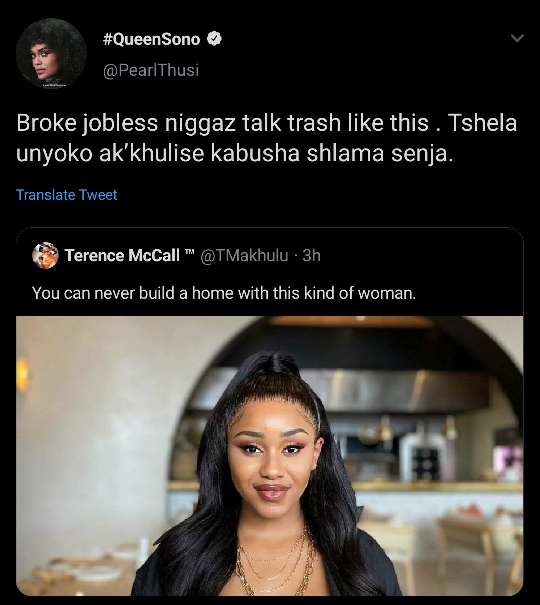 A tweep came for her younger sister Prunella Sanelisiwe Thusi saying her beauty is insufficient to build a home with. The "beauty without brains" sentiments is still widely believed by society and today women who are extremely beautiful are placed under that same umbrella. Such women are labelled 'slay queens' and many believed that they are not wife material.