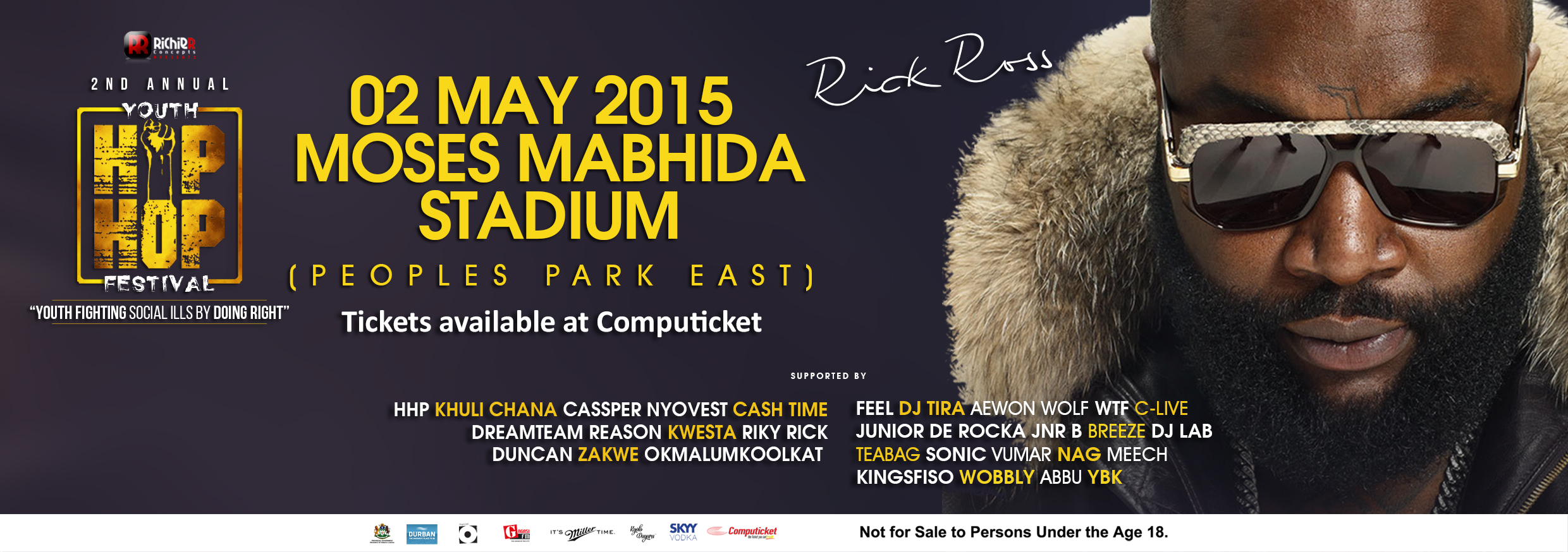 Moses Mabhida is hosting its 2nd Annual Youth Hip Hop Festival on the 2nd of May 2015. I don’t know about you, but when I saw the line-up I was quite amped for what’s to come. Naturally, with Rick Ross headlining the show, he ranks as the number one act that a lot of people want to see but there are three other local acts I'm just as excited to see live. Let me take you through the four rappers I can't wait to see hit the stage next month: