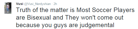However, another Twitter user, associated to Karabo, also took to his Twitter page to make more accusations about football players who are "bisexual and they won't come out..."