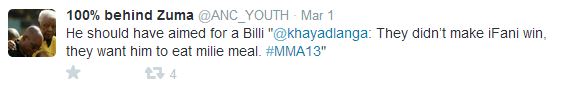 To the Ifani and Vusi Nova fans we’re sorry your favourite artists didn’t win we guess Kwesta and Danny K’s fans were more vigorous in the voting’s then you guys were. Ifani really made us laugh with this tweet below; it’s good to see he’s not a sore loser like some artists we shall refrain from mentioning.