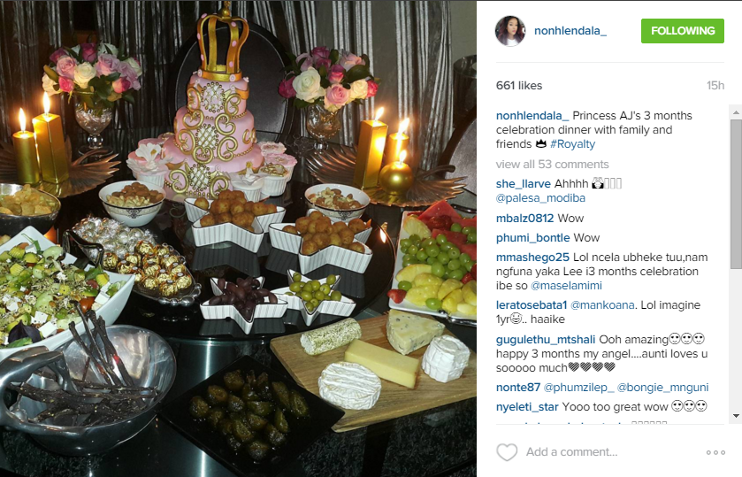 They started off by officially introducing their little one to the nation, sharing beautful pictures from a photoshoot. Nonhle then shared a few pictures from her baby girl's celebration dinner.