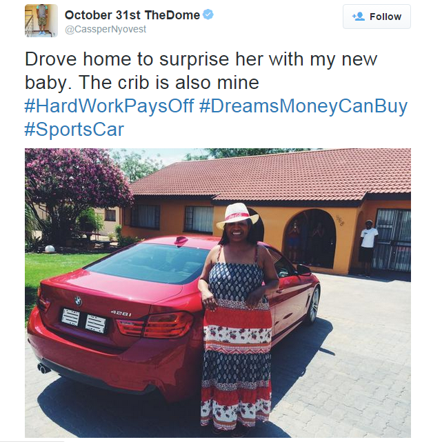According to the paper, Cassper has no property registered in his name. The publication also reported that the only vehicle registered in his name is the BMW 4 Series. Cassper's mother refused to discuss the matter and told Sunday World: "... This is a personal matter so I don't want to comment about this because people have been writing lies about him..."