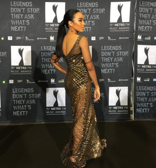 Amanda du-Pont's Metro FM Music Awards black carpet look was a definite winner, but the actress had a bit of a "oh dear" hair moment.