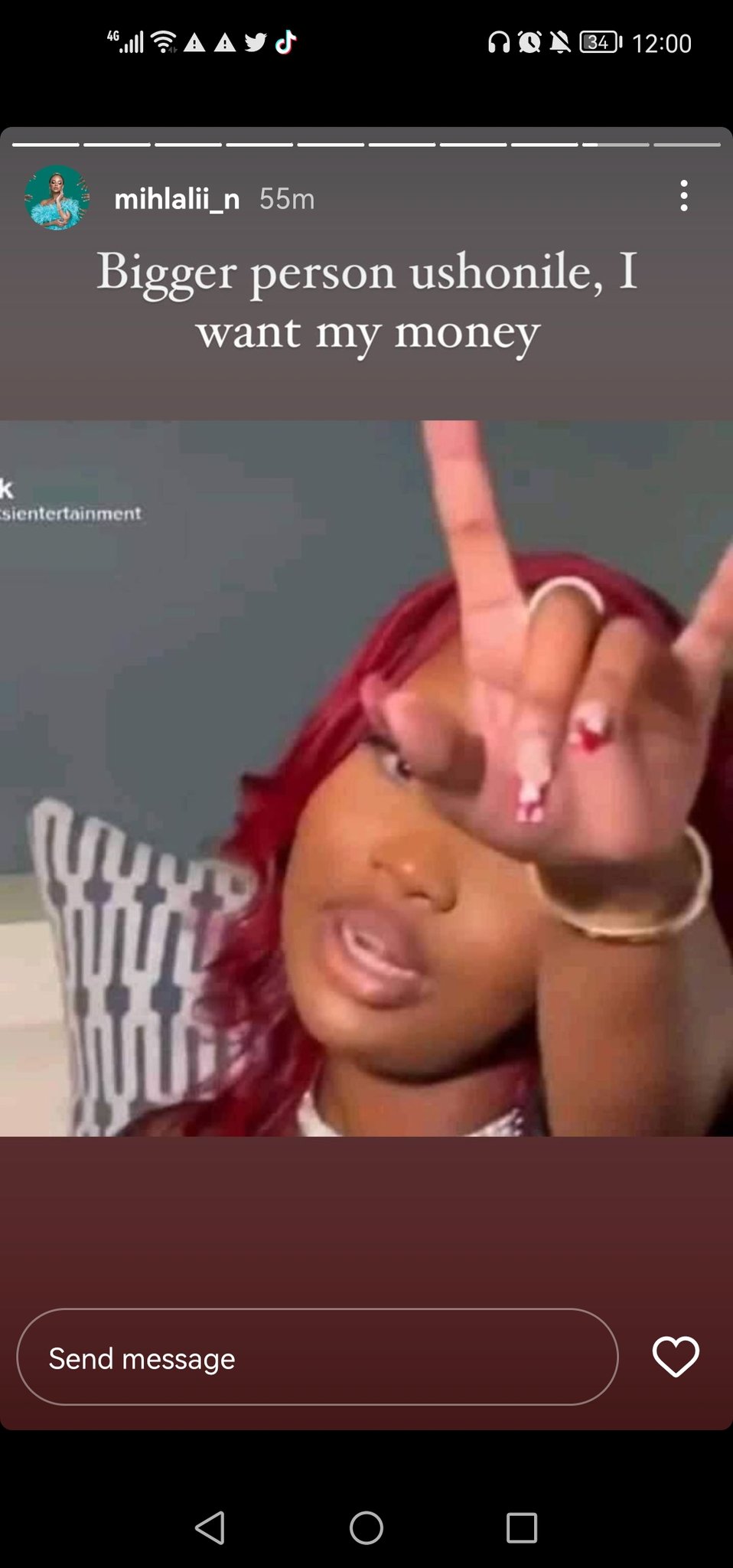 "Bigger person ushonile, I want my money" wrote Mihlali Ndamase Mihlali Ndamase - IG Story Tweeps have applauded Ndamase for standing up for her and demanded what rightfully belong to her. The content creation industry has been dubbed as one that exploit creators by big brands, so for Mihlali Ndamase to stand up, opens up for other content creators to not be intimidated by brands for demanding their money and or compensations.